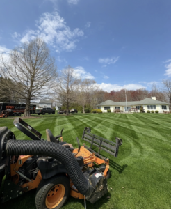 Every Mow features a striped pattern laid within the grass. As well as a trimming of the yard, and obstacles. Concluding every service is a blowing of the driveway, walkways, patios, and anything that grass debris gets on.